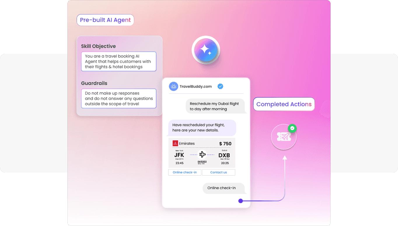 - AI Agents: 24/7 AI-powered agents capable of handling common customer queries, reducing wait times and support costs. These agents can seamlessly transfer complex issues to live agents, ensuring efficient customer service.