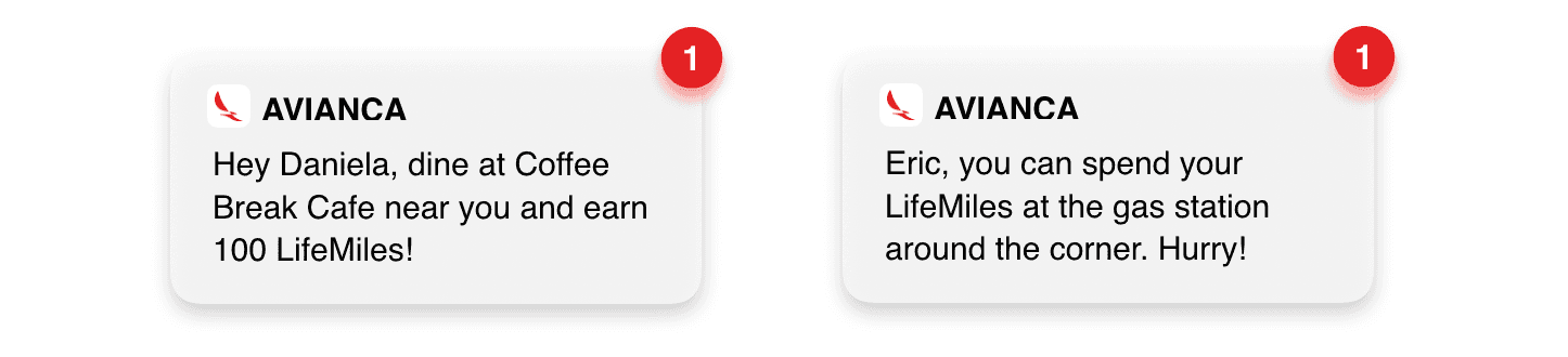For example, one of our customers — Avianca Airlines — uses Pushwoosh geo-based automation to remind frequent flyers to spend their reward miles on trips, purchases from Avianca partners, retailers, gas stations, hotels and banks, strengthening their loyalty even further.