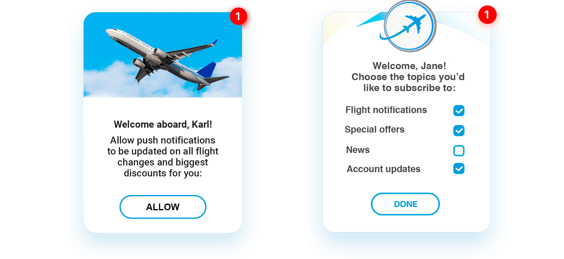 Before you can communicate with users via push notifications, you need to get their permission first (they need to opt in, or subscribe). Opt-in rate** is one of the key marketing metrics — the success of your communications depends on how many subscribers you have.