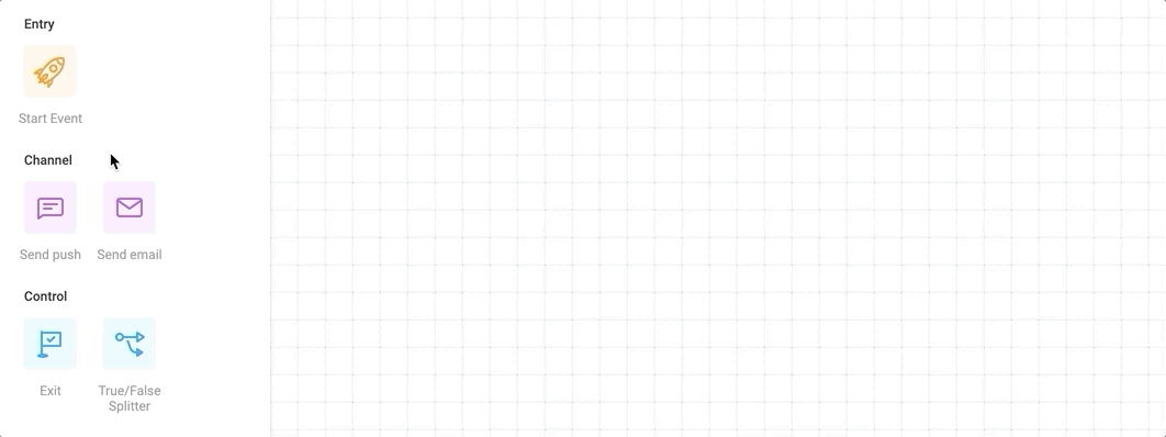 Lifecycle marketing with Customer Journey is simple and automated. A visual drag-and-drop tool allows building sequences of messages that will be automatically delivered to your users depending on the tags they’ve been given or actions they’ve performed.