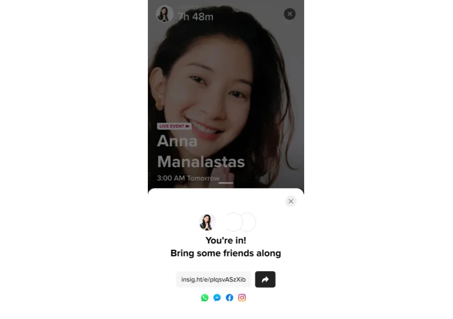উদাহরণ হিসেবে Insight Timer-কে নিন। এটি একটি সাবস্ক্রিপশন-ভিত্তিক অ্যাপ হিসেবে কাজ করে, কিন্তু এটি তাদের শিক্ষকদের সমর্থন করার জন্য তার কমিউনিটি বাড়ানোর কথাও ভাবে যারা অনুদানের জন্য কাজ করে। তাই যখন একজন ব্যবহারকারী একটি আসন্ন ইভেন্টের জন্য সাইন আপ করেন, তখন অ্যাপটি পরামর্শ দেয় যে ব্যবহারকারী এটি তাদের বন্ধুদের মধ্যে প্রচার করুক।