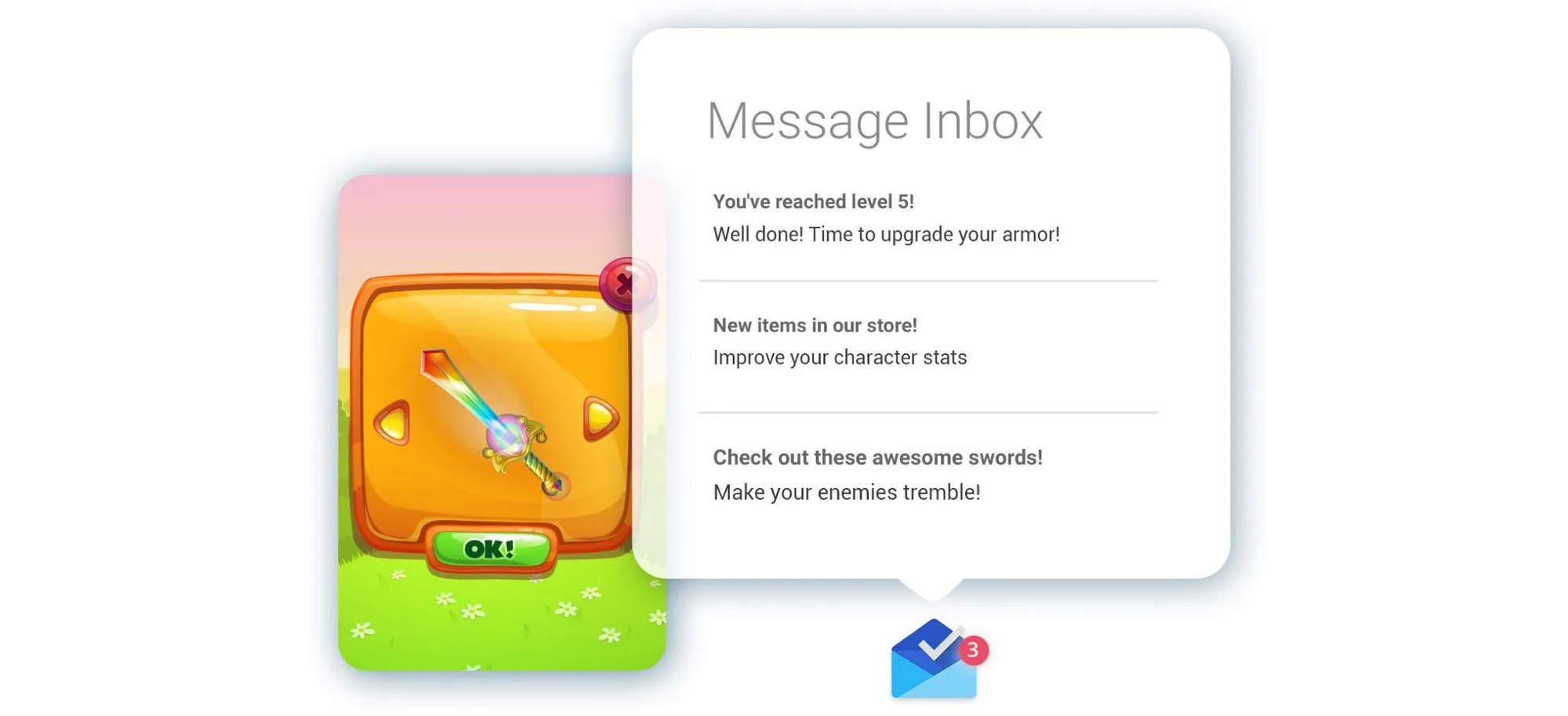 Una aplicación de juegos, por ejemplo, puede usar el Buzón para mostrar promociones personalizadas basadas en el nivel del juego o el historial de compras, sin interrumpir la experiencia de juego de sus usuarios.