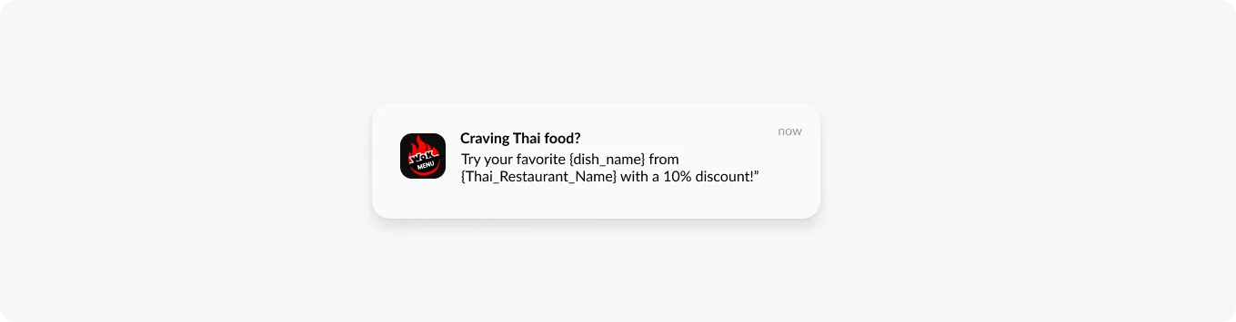 Por ejemplo, en una aplicación de entrega de comida, podría enviar una notificación push recomendando un restaurante o comida específica en función de los pedidos anteriores y las preferencias de la aplicación del usuario.