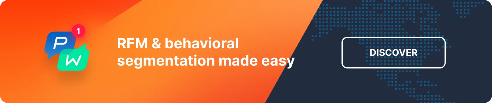 作为一种非常特殊的行为细分,RFM 细分需要跟踪购买事件。要正确设置,您可能需要参考 Pushwoosh 的 RFM 细分文档,或者更好的方式是,通过与我们团队的私人通话亲自了解。