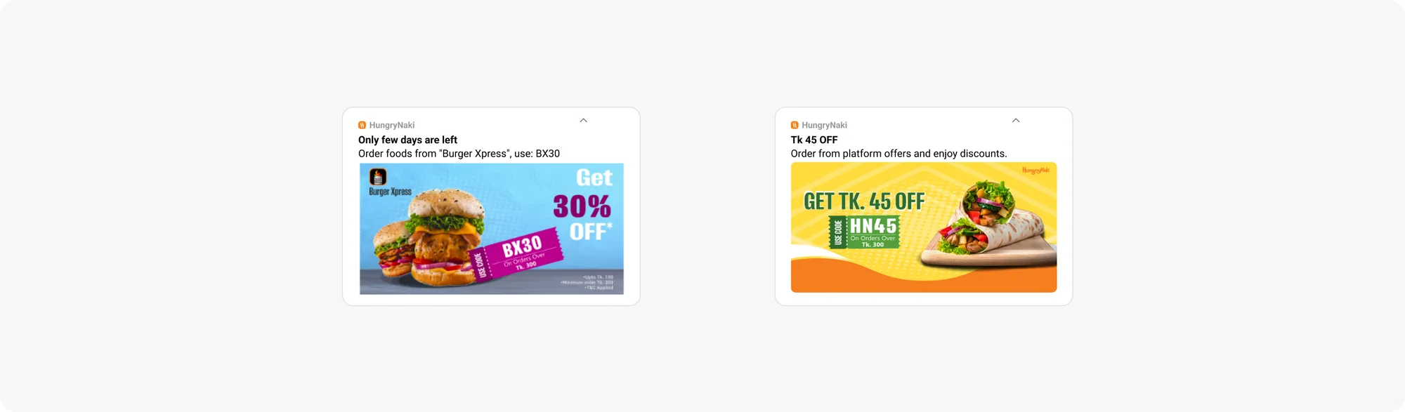 • 量身定制的优惠: 为了让这些活跃用户不断回头,HungryNaki 发送了富媒体推送通知——这些视觉上引人注目的消息在用户屏幕上脱颖而出。
